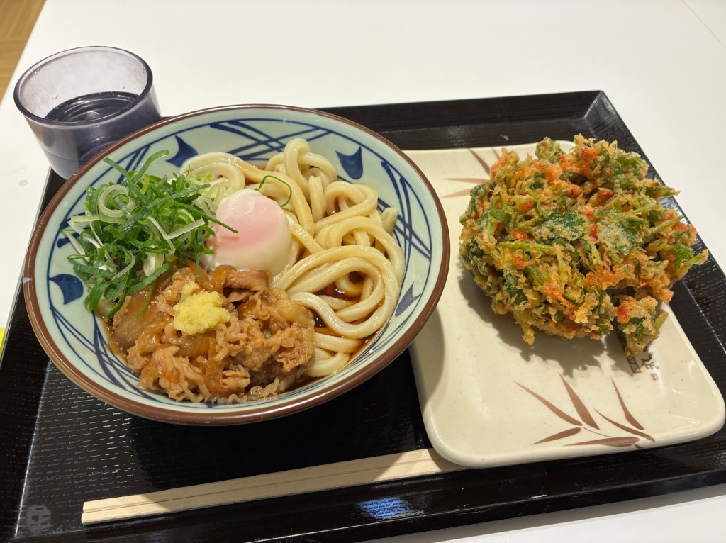 丸亀製麺は、上戸彩ちゃんが羨ましいと思ってしまった、ぶっかけに、うどーなつ。かきあげはデカ過ぎ。もたれないけど。