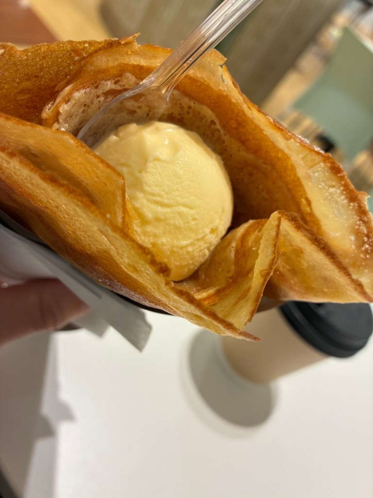 クレープ屋さんはスタート時高いイメージだったけど、シンプルなシュガーバターにアイスをトッピング。